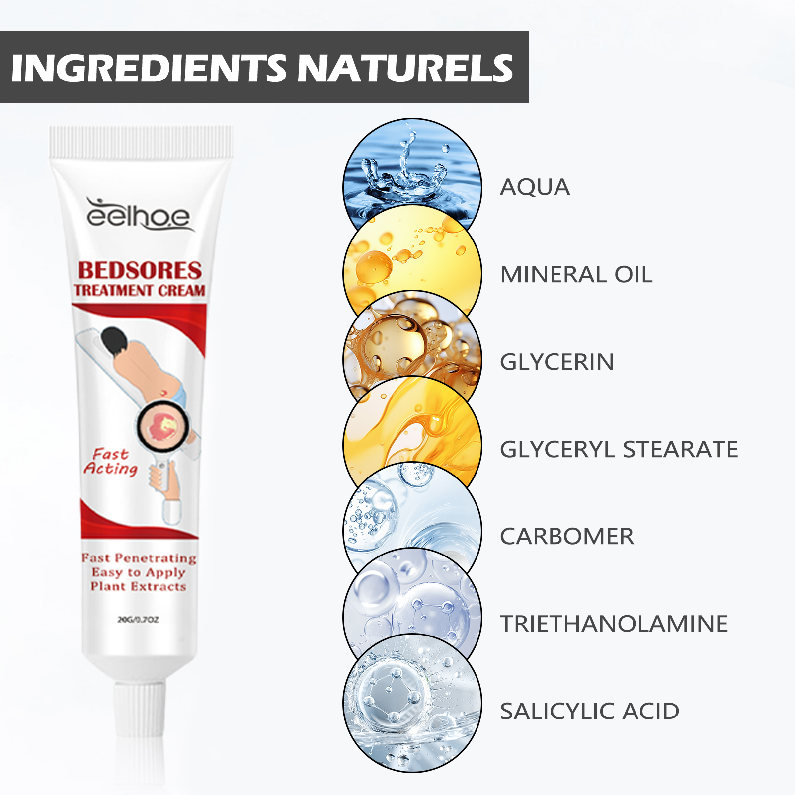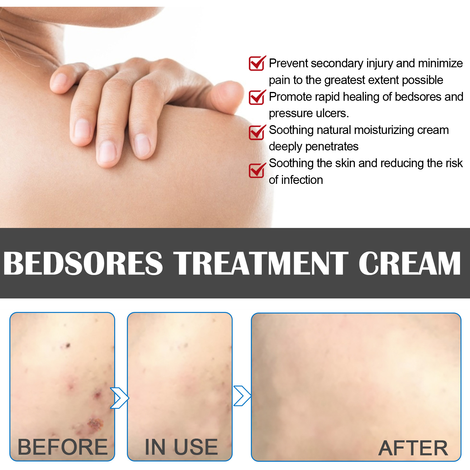 我们的肌肤护理霜含有卡波姆、三乙醇胺、水杨酸。它可以防止继发性损伤,最大限度地减轻疼痛。它的使用方法很简单:1.用水洗手。2.涂于患处。3.盖上盖子,以避免交叉污染。并且可以舒缓皮肤,降低感染风险。