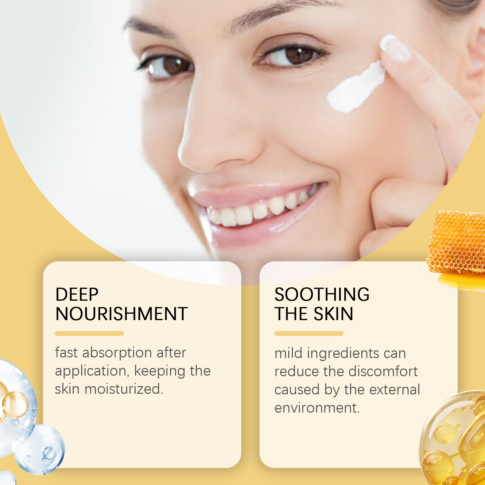 我们的皮肤护理霜含有甘油、矿油。它可以使用后吸收快,保持肌肤保湿。温和的成分可以减轻外界环境引起的不适。它的使用方法很简单:清洁和干燥你的皮肤。取适量均匀涂抹于面部及身体。轻轻按摩至吸收。并且可以适合日常护理,让肌肤时刻保持水分。