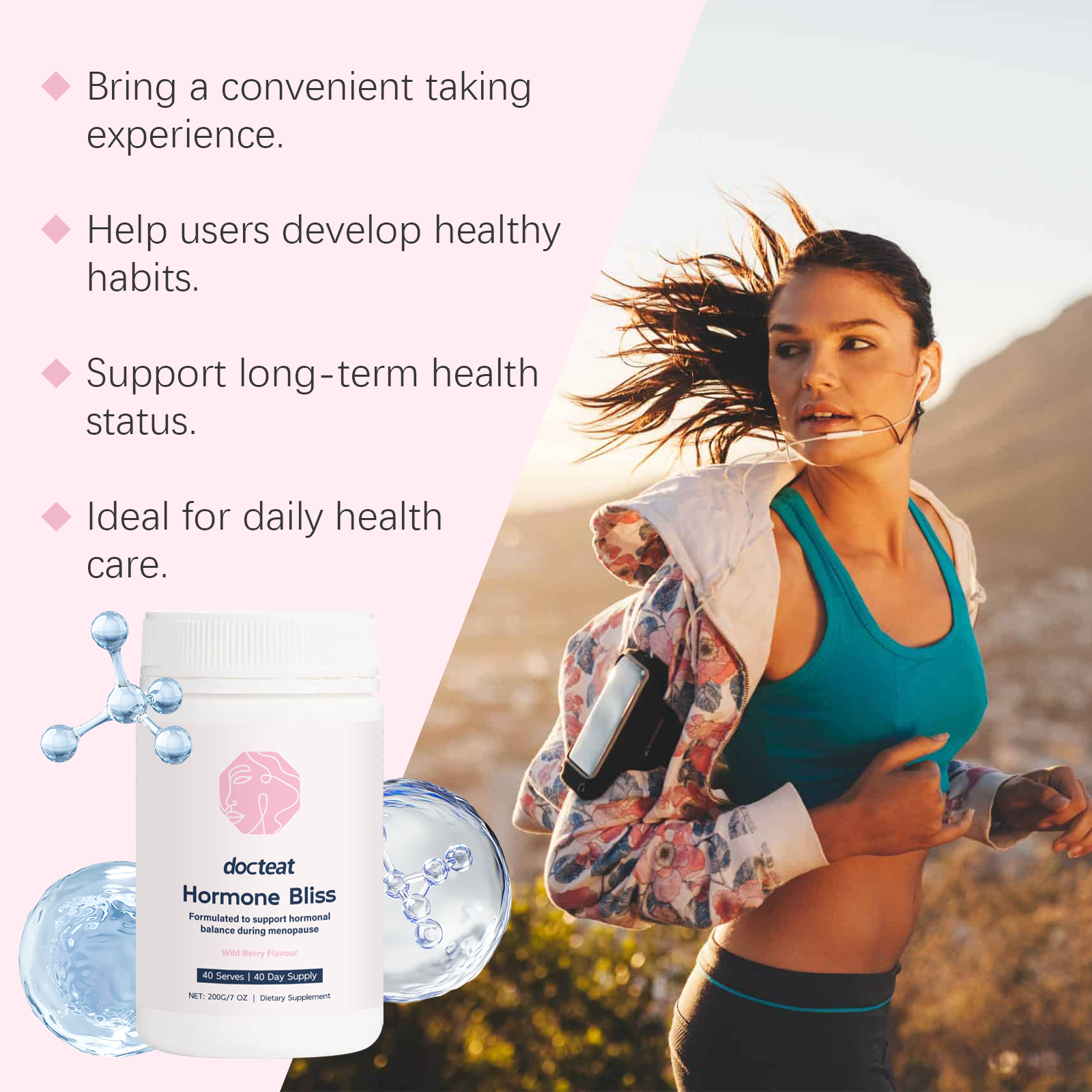 我们的荷尔蒙平衡粉,由牡荆果实提取物、红车轴草叶提取物精心调配而成。专为提高日常活力设计。使用方法极为便捷:一勺5克,浸泡在水中饮用。并且可以优化日常生活。易于融入日常生活中。适应各种饮食需求。