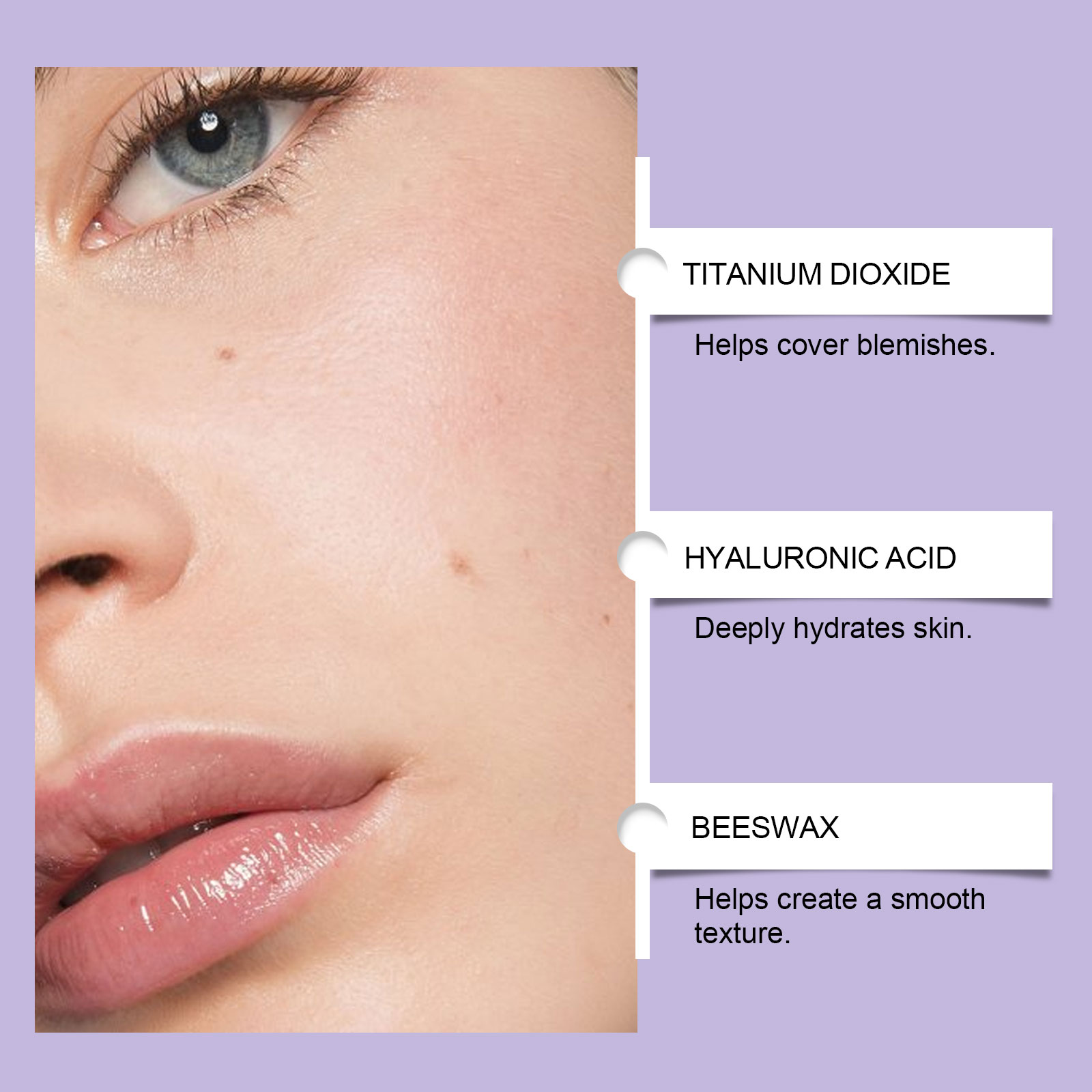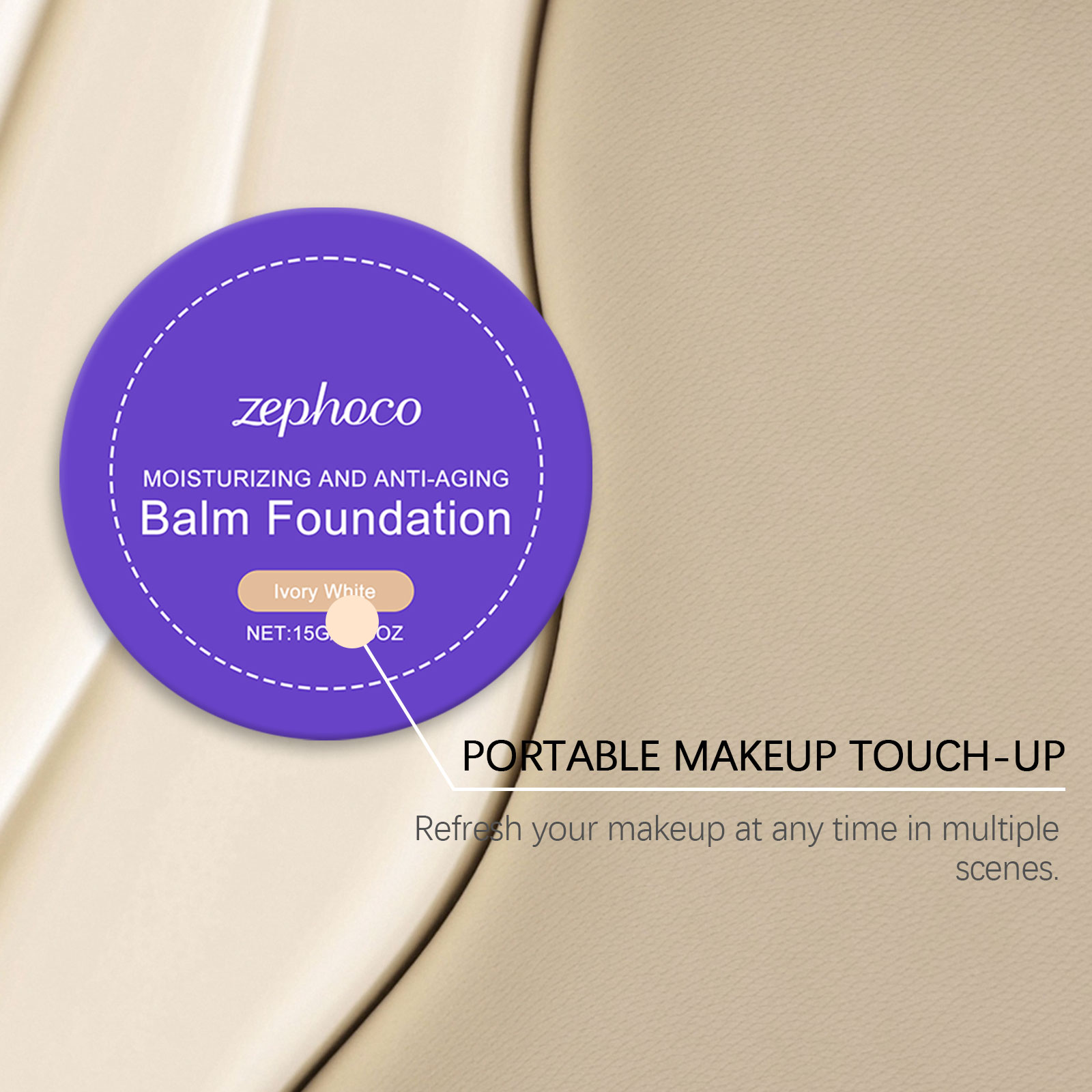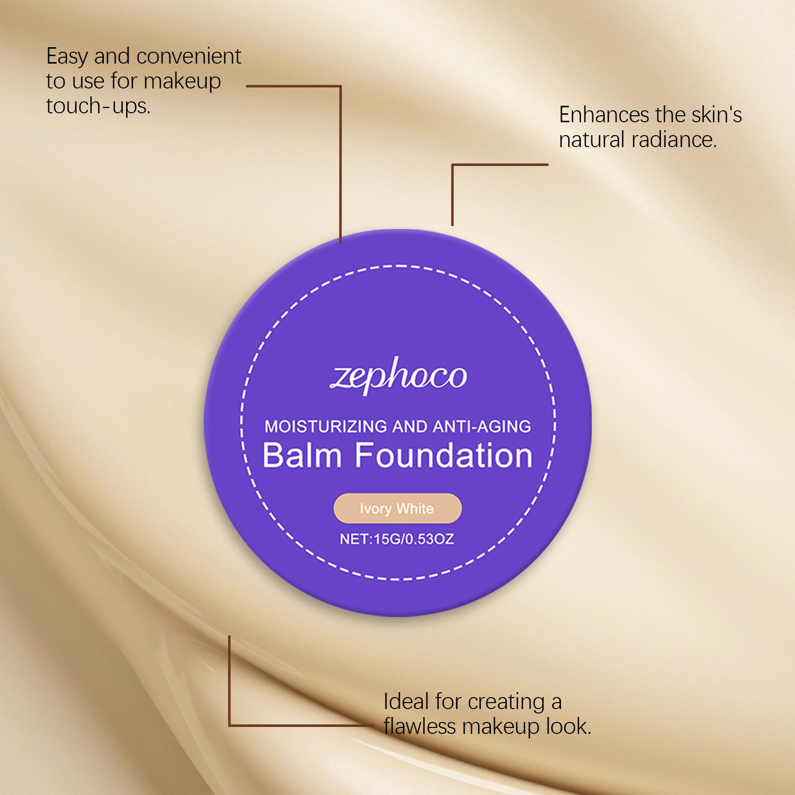 我们的象牙白保湿粉底膏,由棕榈酸乙基己酯、二氧化钛精心调配而成。专为全天保持哑光效果设计。使用方法极为便捷:清洁你的脸部并保持干燥。取适量本品均匀涂抹于面部,并轻轻拍打至完全覆盖。并且可以全天保湿、不干燥。