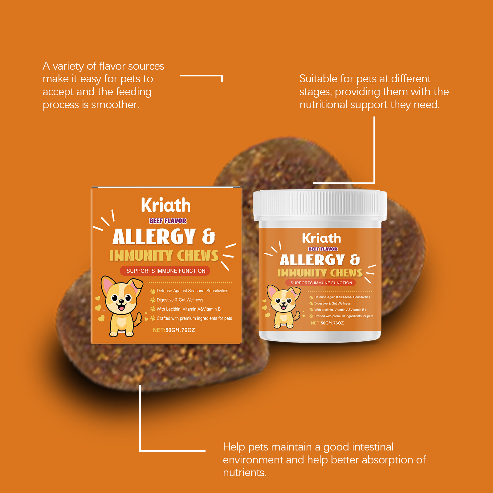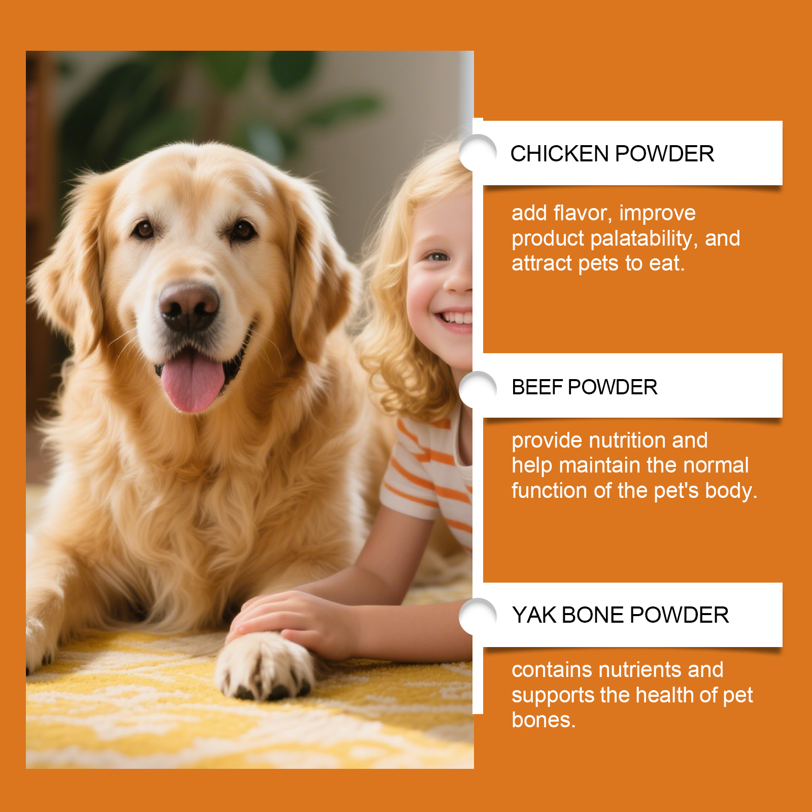 我们的宠物维生素咀嚼片,由鸡肉粉、牛肉粉精心调配而成。专为宠物毛发提供充足营养,增强毛发韧性,调节肠道菌群平衡,助力宠物更好消化吸收食物设计。使用方法极为便捷:可直接喂食或与食物混合喂食。使用方法:15磅以下,每天1颗;15~35磅,每天2颗;35磅以上,每天3颗。并且它可以提升机体免疫力,让宠物活力满满,健康成长,参与宠物身体各项代谢活动,维持内分泌稳定。