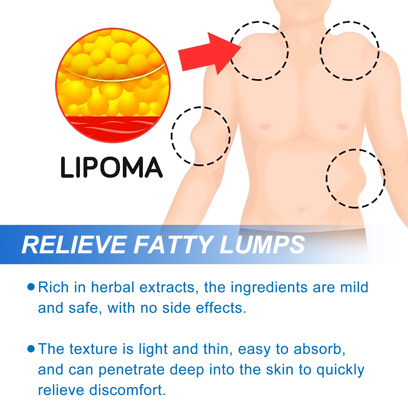 我们的脂肪结护理膏含有矿油、甘油。它可以对皮肤进行保湿,能迅速渗透肌肤并形成一层保湿膜,有效防止水分流失,能为皮肤提供丰富的营养,调理肌肤水油平衡。它的使用方法很简单:使用前先清洁并擦干患处,取适量护理药膏涂于患处,轻轻按摩至完全吸收即可。使用后有助于刺激血液循环,排出体内的毒素,消除身体肿胀,让整个人神清气爽。