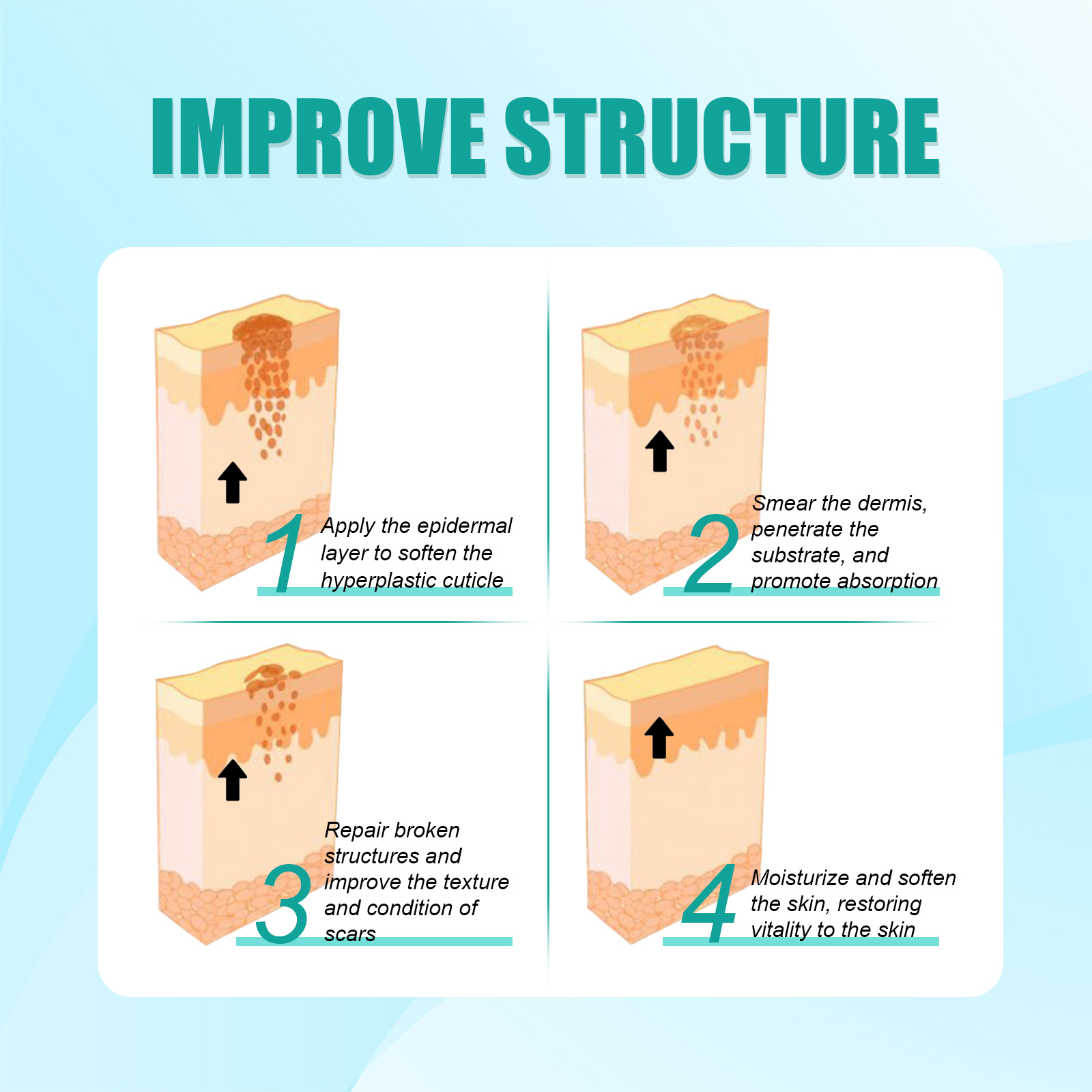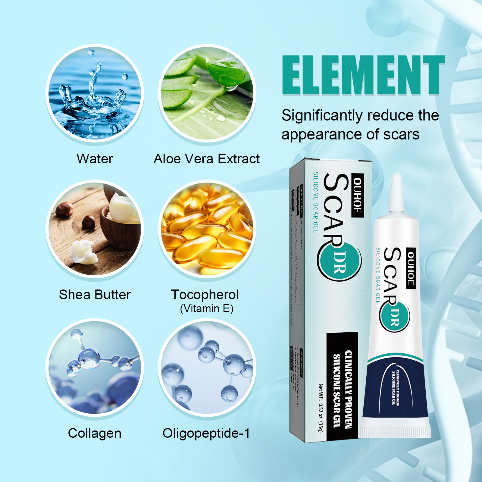 我们的伤疤修护凝胶含有乳木果油、芦荟提取物、生育酚(维生素 E)。它可以涂抹表皮层,软化增生角质层;涂抹真皮层,渗透底层,促进吸收;修复破损结构,改善疤痕质地和状况;滋润软化肌肤,恢复肌肤活力。它的使用方法很简单:1.轻轻地清洁并擦干皮肤;2.将产品喷在患处;3.轻轻按摩在疤痕上;4.静置30秒。伤疤修护凝胶有效的疤痕治疗和预防异常疤痕,包括增生性疤痕、烧伤疤痕和瘢痕疙瘩。